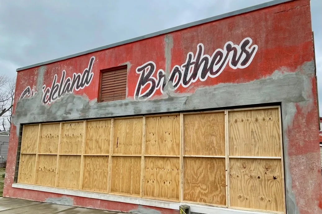 Weathered Walls . Preparation is key for a custom Weathered Walls treatment, restoring the Strickland Brothers building to its original glory . Oswego, Kansas